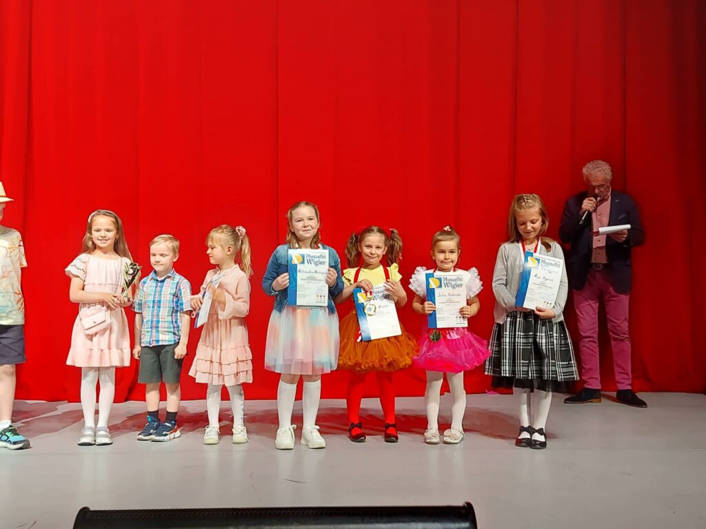 W dniach 25-27 maja w Suwałkach odbył się XXIII Międzynarodowy Festiwal Piosenki i Tańca „Muszelki Wigier 2023”. 🎶 To jeden z najbardziej popularnych i cenionych w Europie festiwali, skierowany do solistów oraz zespołów dziecięcych i młodzieżowych podczas, którego artyści prezentują swoje zdolności wokalne oraz taneczne. Naszą placówkę reprezentowała ZOSIA KREŃSKA, która najpierw na podstawie nagrań demo zakwalifikowała się do finału konkursu, później podczas przesłuchań „na żywo” wyśpiewała utworem „Motylem byłam” zaszczytne 1 MIEJSCE w kategorii 6-10 lat – zdobywając ZŁOTĄ MUSZELKĘ. 🏆